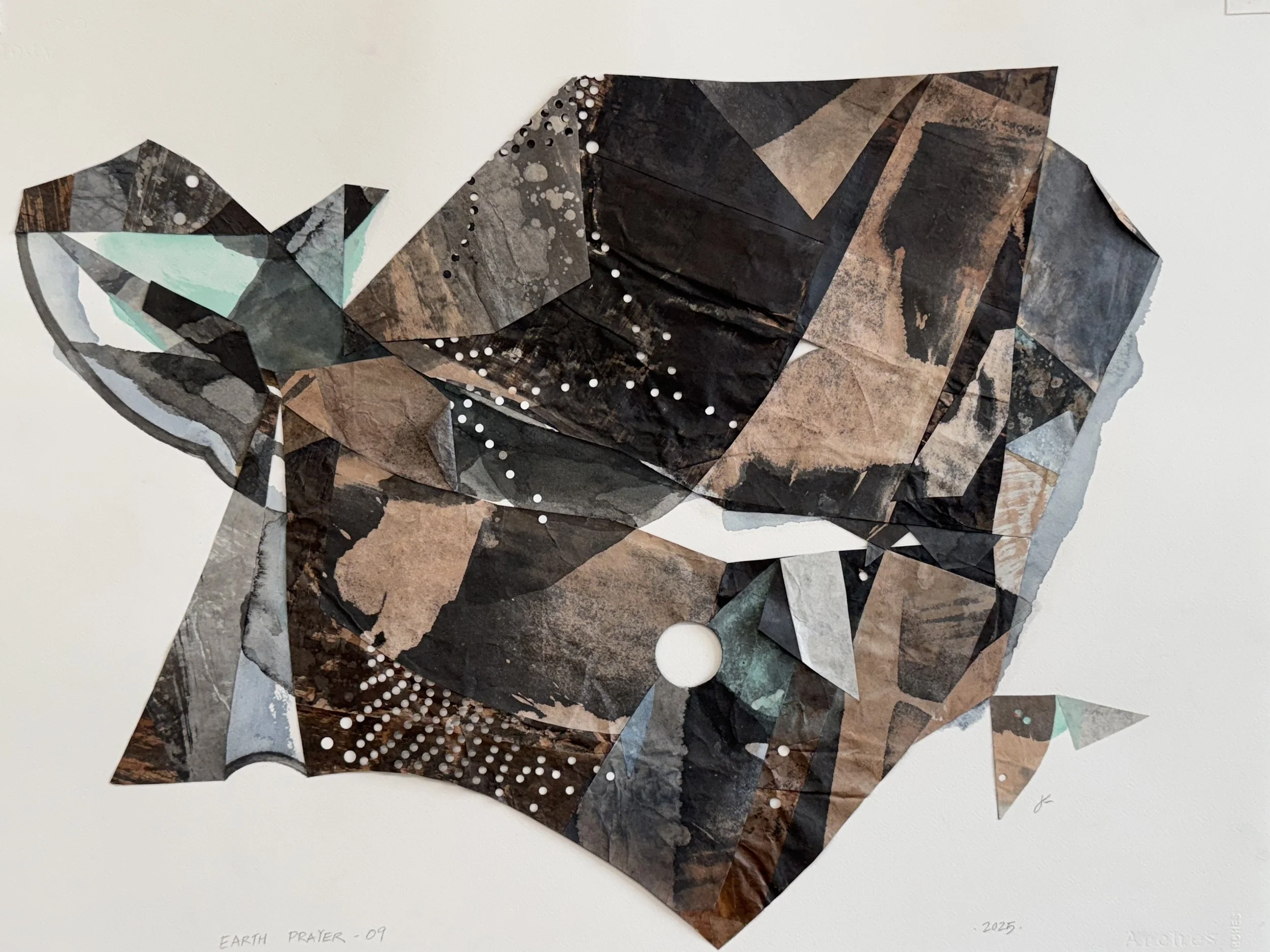 Earth Prayers are (re)constructed drawings: as visual prayers for the earth. Each is made of paper colored with natural tannin-rich inks, dyes, minerals and binders through unique processes of weathering, piercing, folding and gluing. Select Prayers from current series shown.