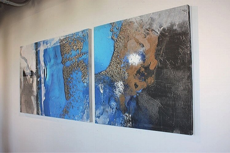 2011, archival pigment print with mineral pigments, acrylic, sumi ink, Chicago beach sand, silver, Sekishu paper on Hahnemuhle paper on 2 panels