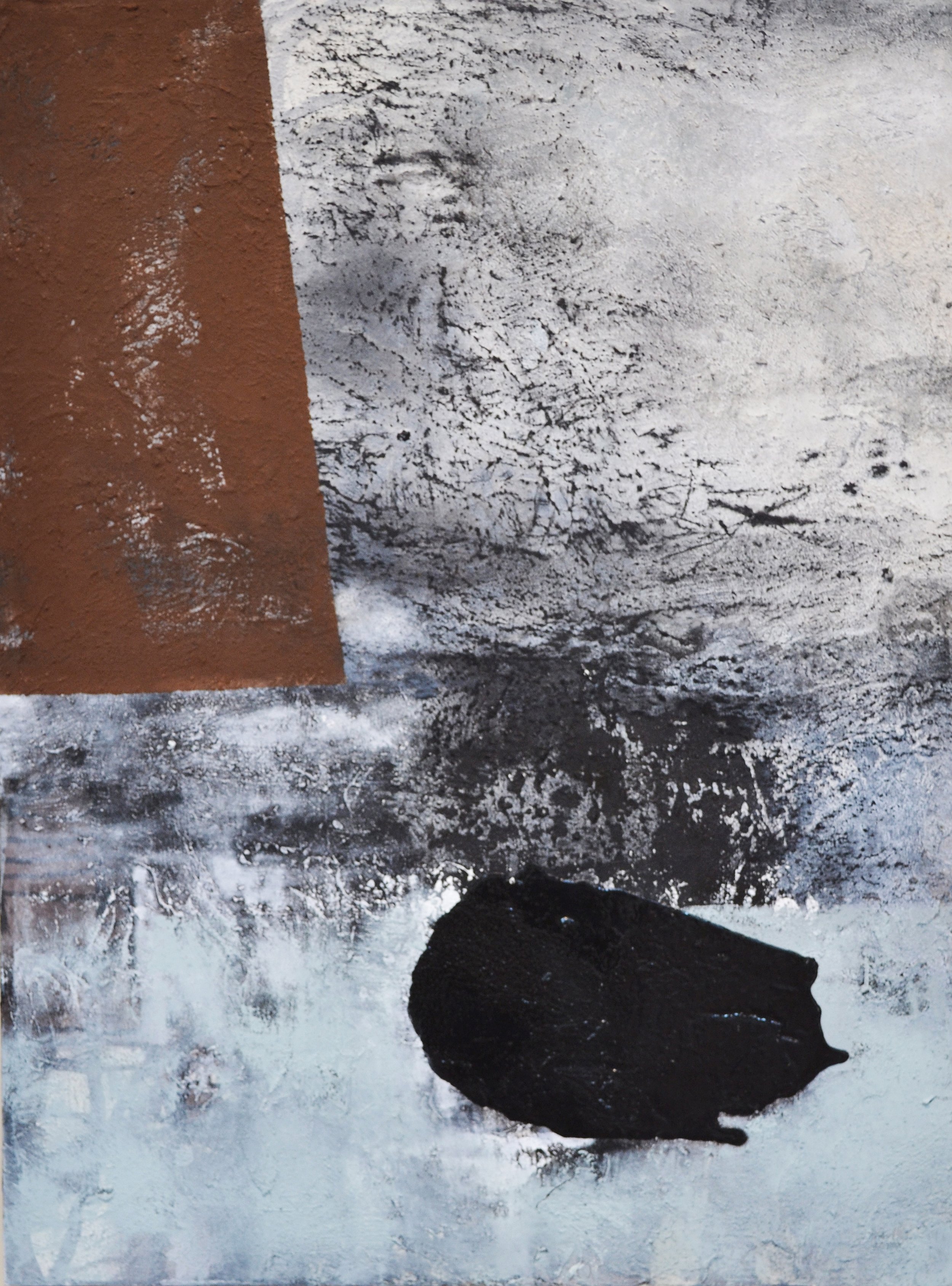 2013, Cyprian Umber, white malachite, charcoal, marble powder, washi fiber on panel