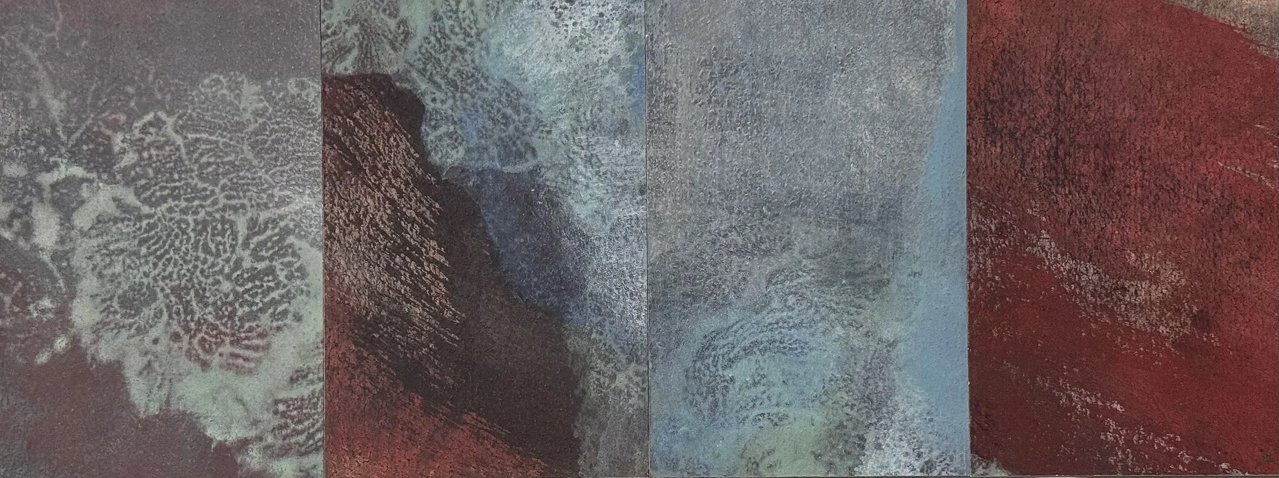 2022, natural mineral pigments, graphite, clay, pure silver, sumi ink on linen